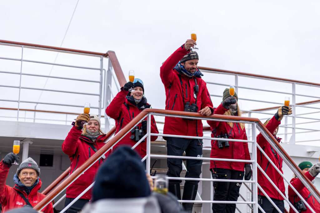 Der erste Abend begann mit einem hervorragenden Buffet und einem gemütlichen Drink an der Bar, während das Schiff über Nacht nach Ålesund fuhr. Die Stadt empfing uns am nächsten Morgen still und winterlich – perfekt für einen entspannten Tag. Einige Gäste unternahmen einen Ausflug in den Fjord und kehrten begeistert zurück.